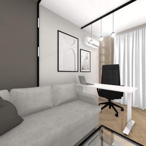 LOKAL BIUROWY Domowe biuro Inspiracją było połączenie funkcjonalnego biura z przytulnym pokojem gościnnym. Zamawiającym zależało na jasnym i uporządkowanym wnętrzu,